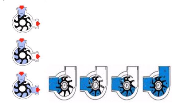② 當撓性葉片旋轉時,液體由泵腔吸入部被帶入排出部。